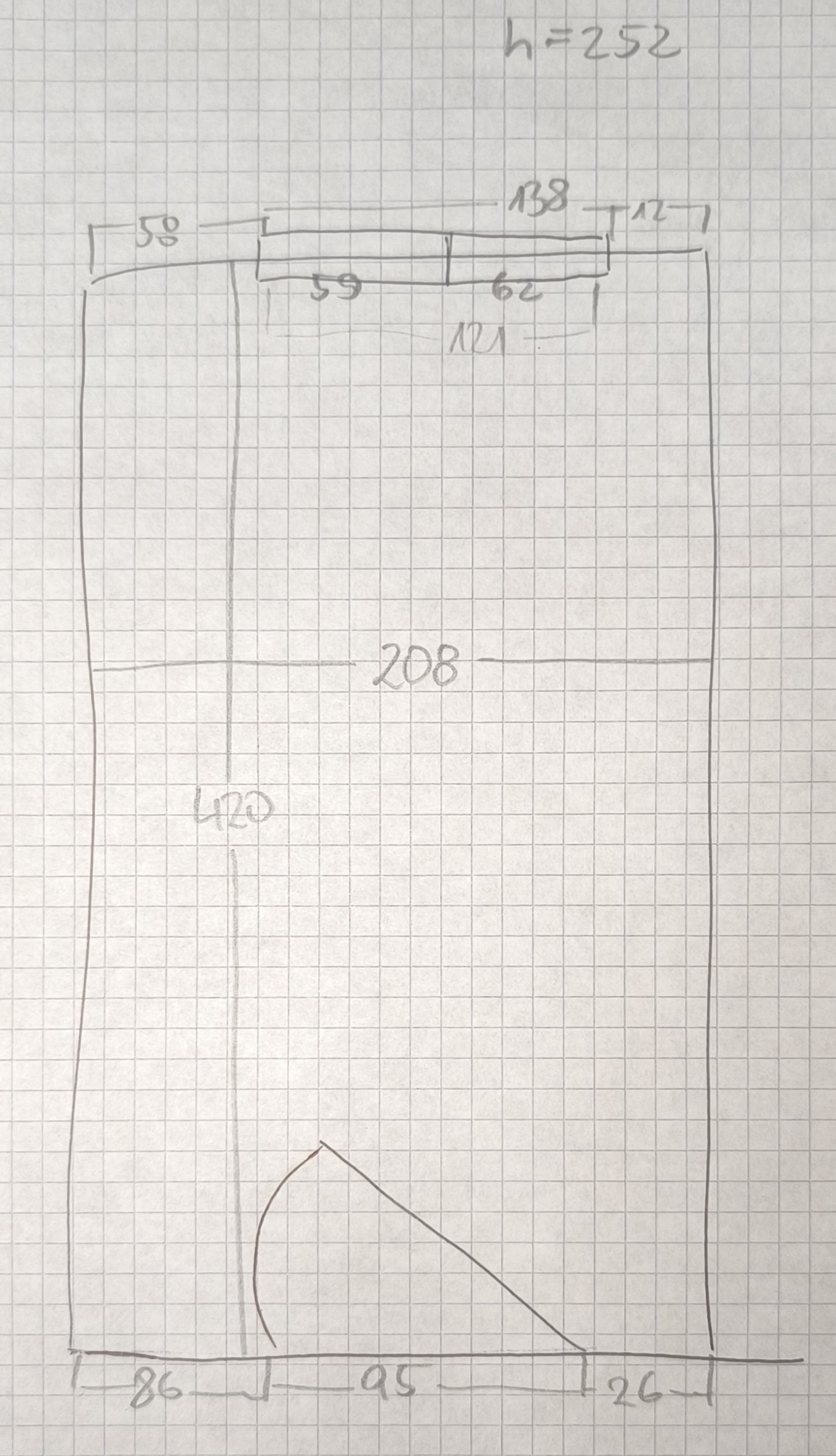Aufmaß des Raumes in cm. Das Ganze ist seitenverkehrt, da ich die Zeichnung nur ein mal habe und der Raum genau anders herum ist. Die beiden Wohnungen liegen Wand an Wan in verschiedenen Eingängen.