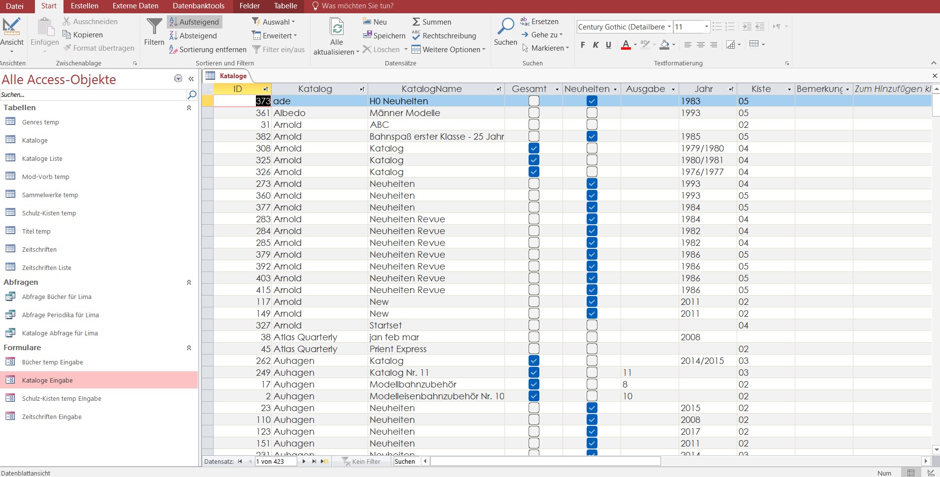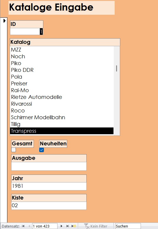 Die Erfassung findet mit einer Access-Datenbank vor Ort mittels VPN in mein NAS statt. Access ist die beste Sammlungsverwaltung, da hier jede Lösung zu 100 Prozent individuell gestrickt und auch spontan geändert werden kann. Auch sind die Abfrage- und Exportmöglichkeiten sagenhaft gut.