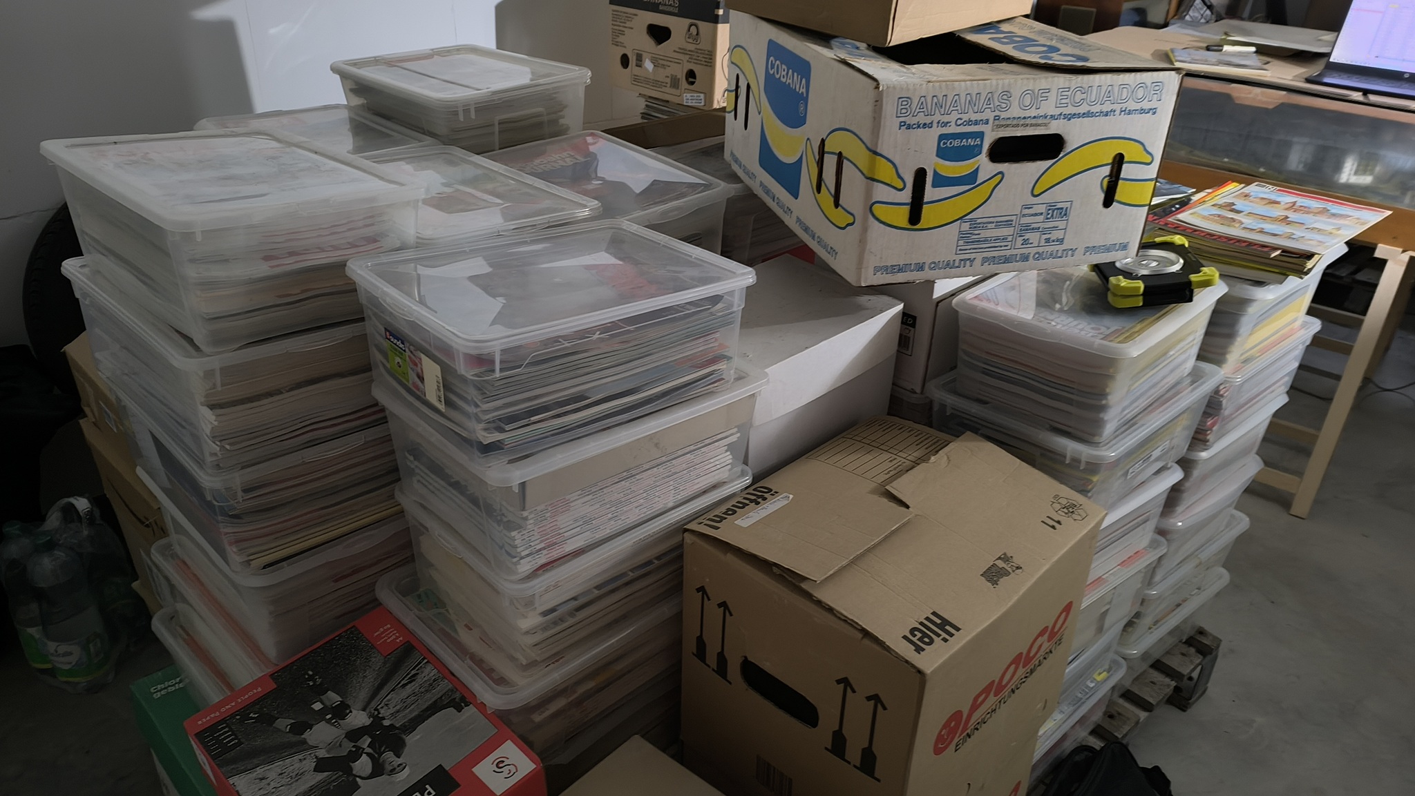 Die umfangreiche Sammlung aus der Sammlung Schulz ist buchmäßig erfasst, bis auf die Dinge, die noch aus den Katalogkisten zu den Büchern zuzusortieren sind.